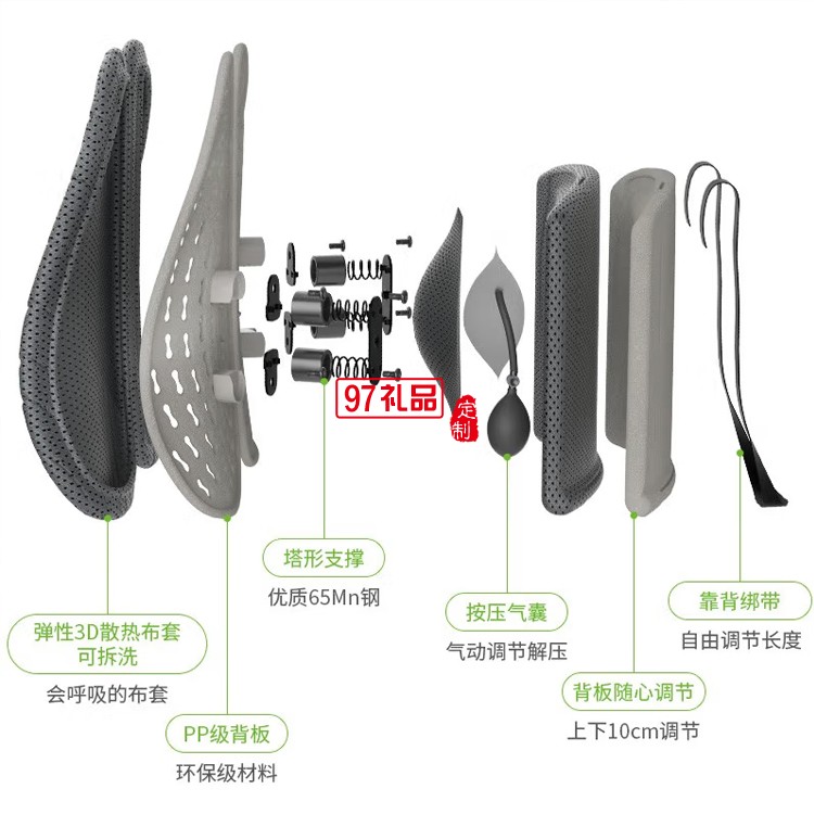 米喬人體工學(xué)腰墊腰靠靠墊辦公室氣動版定制公司廣告禮品