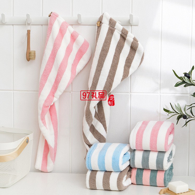 日系超細(xì)纖維加厚珊瑚絨陽離子干發(fā)帽可愛包頭巾吸水速干條紋浴帽