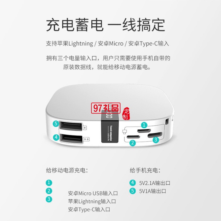 數(shù)顯移動(dòng)電源充電寶10000毫安快充小巧公司廣告禮品定制
