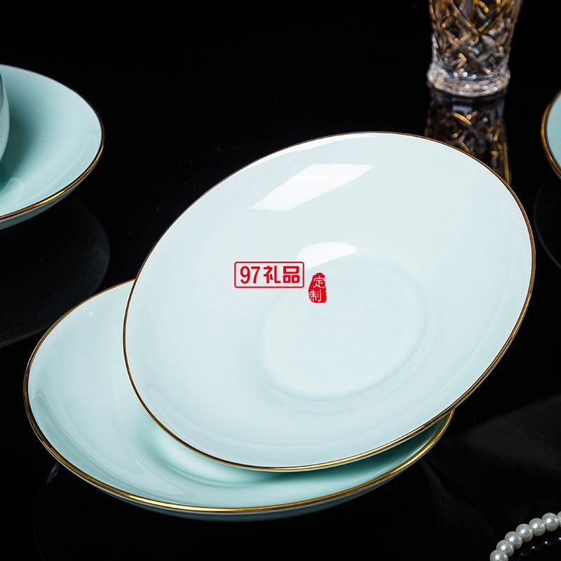 陶瓷餐具景德鎮(zhèn)青玉瓷手繪金邊碗碟套裝白瓷家用禮品定制青瓷套碗
