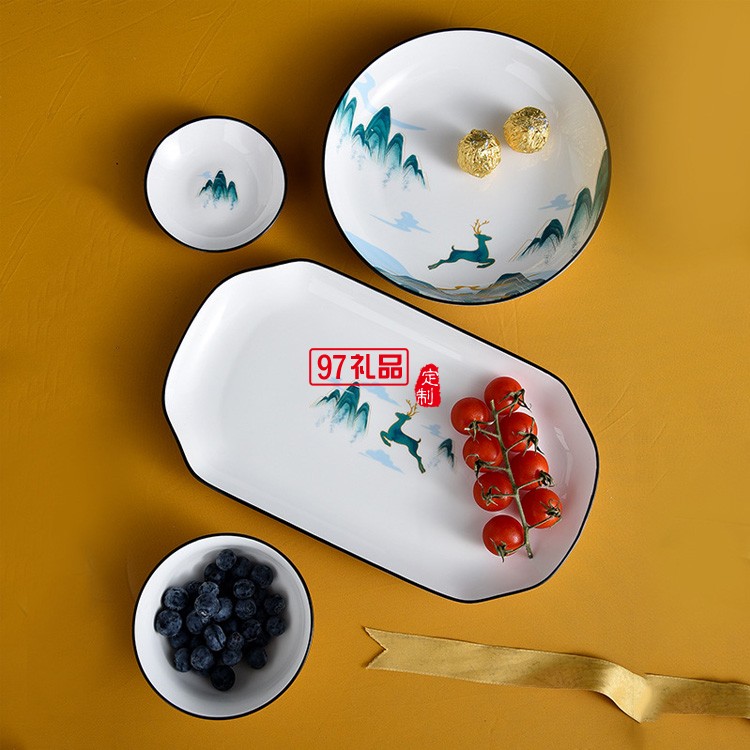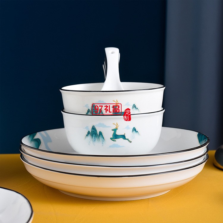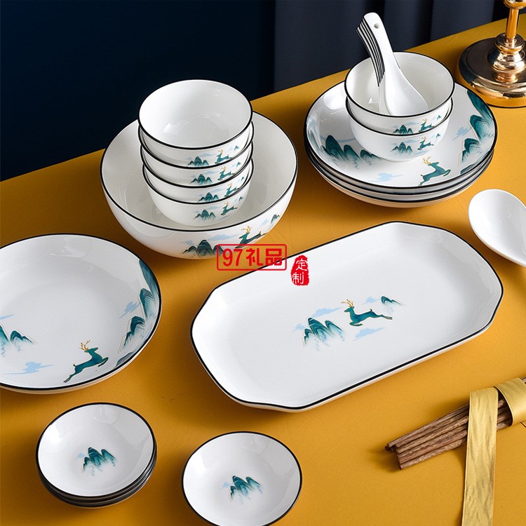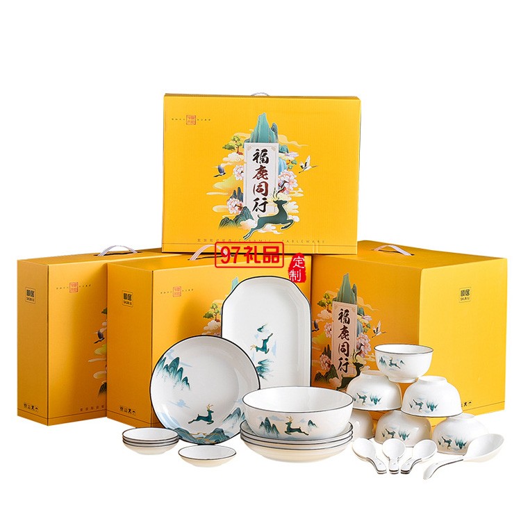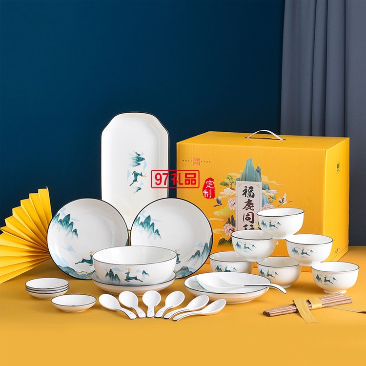 福鹿同行陶瓷餐具碗盤(pán)碟禮盒裝家用碗勺碗筷套裝開(kāi)業(yè)活動(dòng)送禮