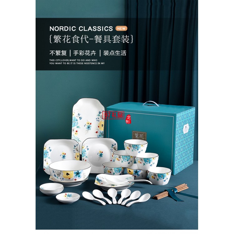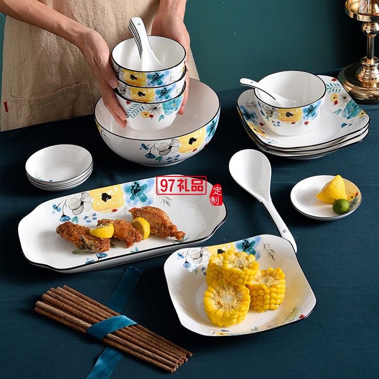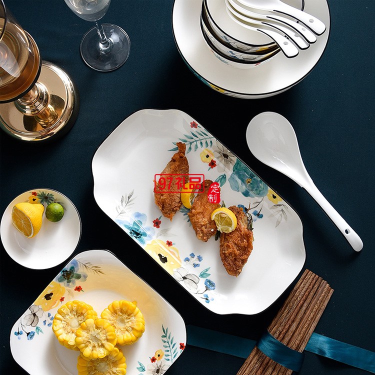 創(chuàng)意陶瓷餐具碗盤碟套裝家用餐盤米飯碗湯碗組合活動禮品