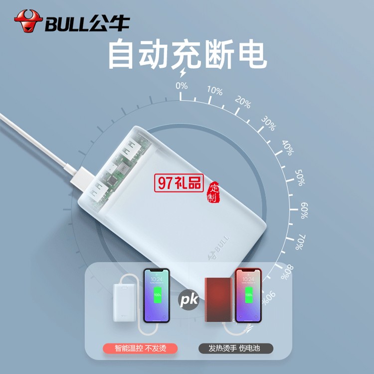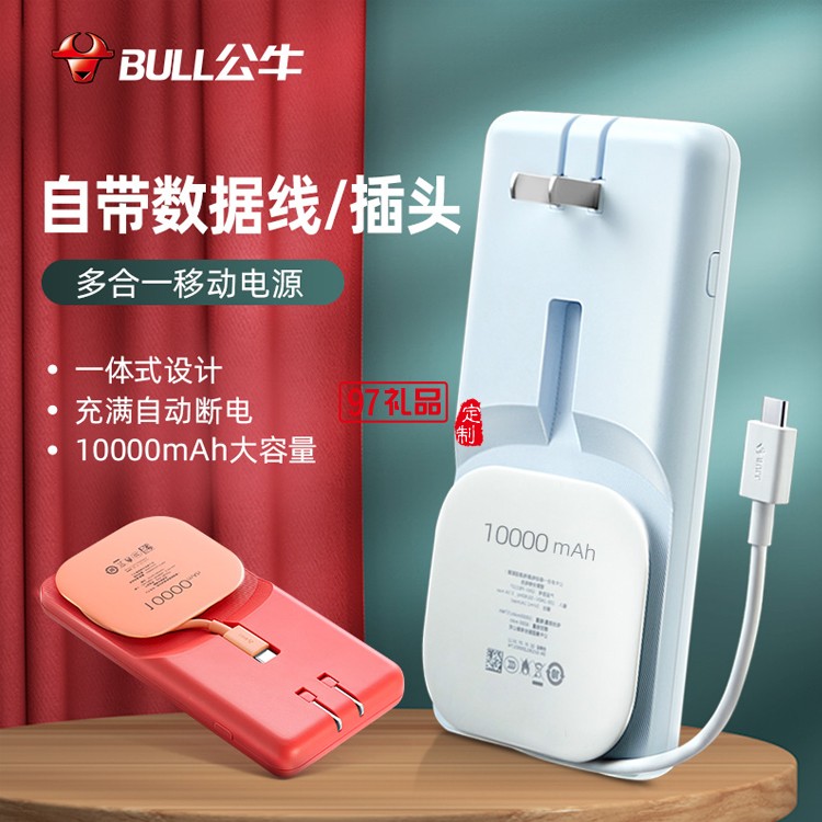 公牛充電寶自帶線快充無線迷你移動電源1萬毫安定制公司廣告禮品