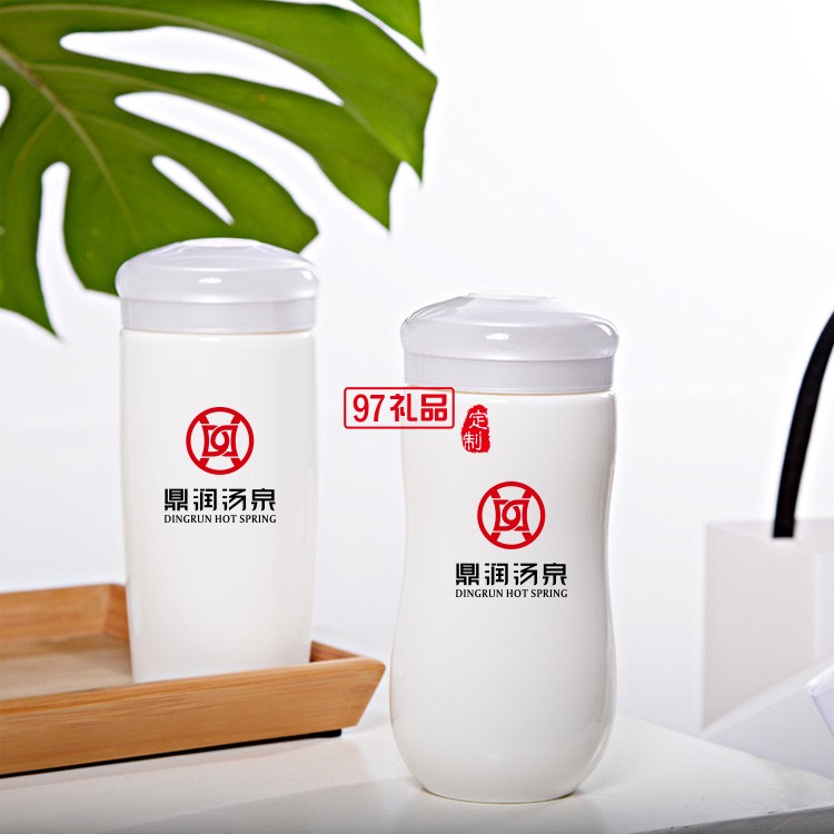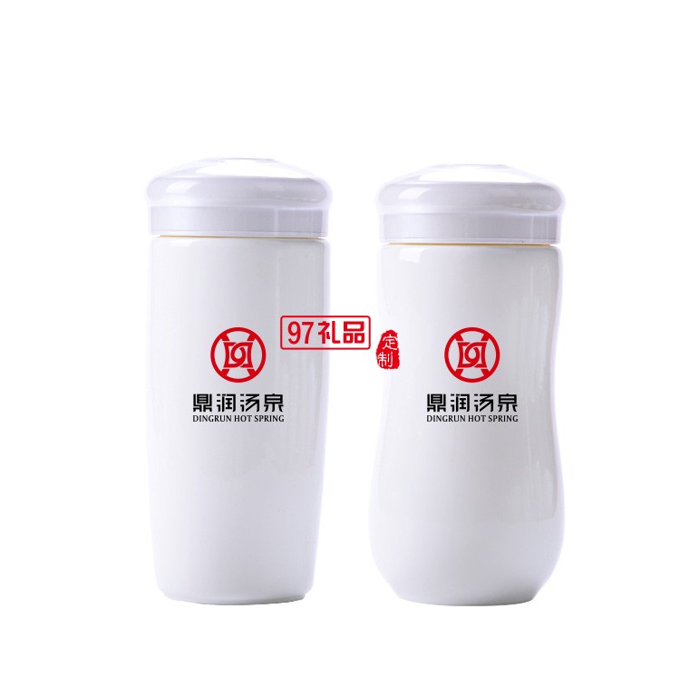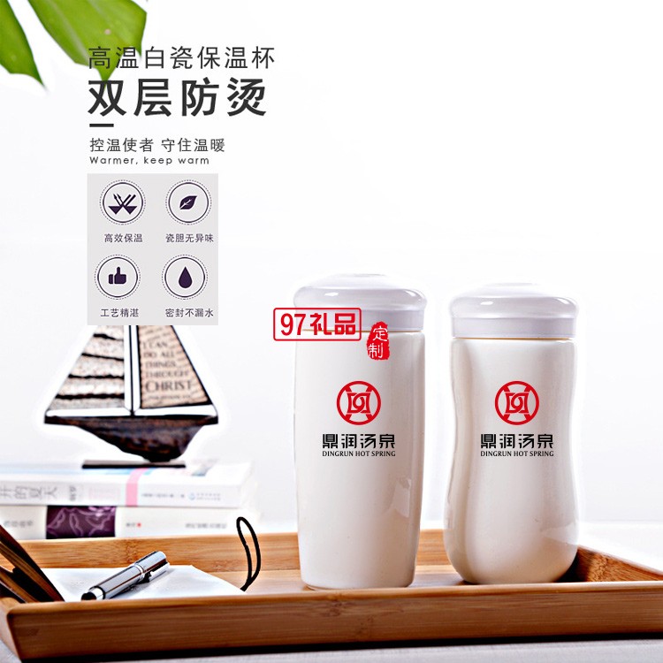 鼎瑞湯泉定制陶瓷雙層保溫杯創(chuàng)意帶蓋白瓷保溫杯可定制畫面logo伴手禮