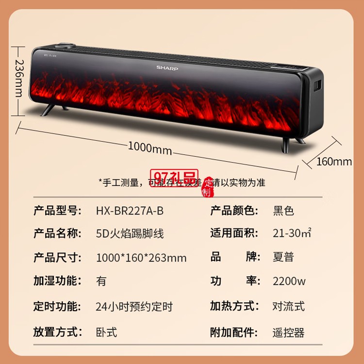 夏普石墨烯踢腳線取暖器智能電暖器HX-BR227A-B定制公司廣告禮品