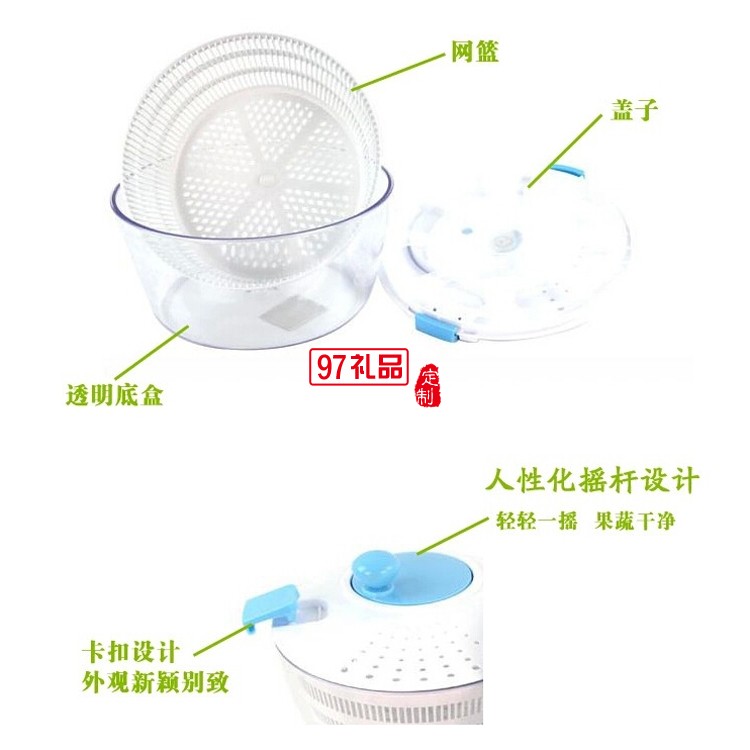 功能:利用離心率原理,只需輕輕一轉(zhuǎn),就能全面洗凈蔬菜、水果上的泥污,完畢后將水倒盡再次轉(zhuǎn)動,殘留的水分快速從蔬菜、水果上脫離。