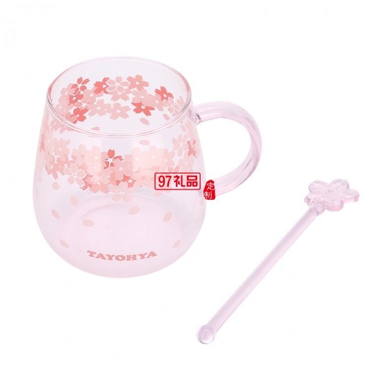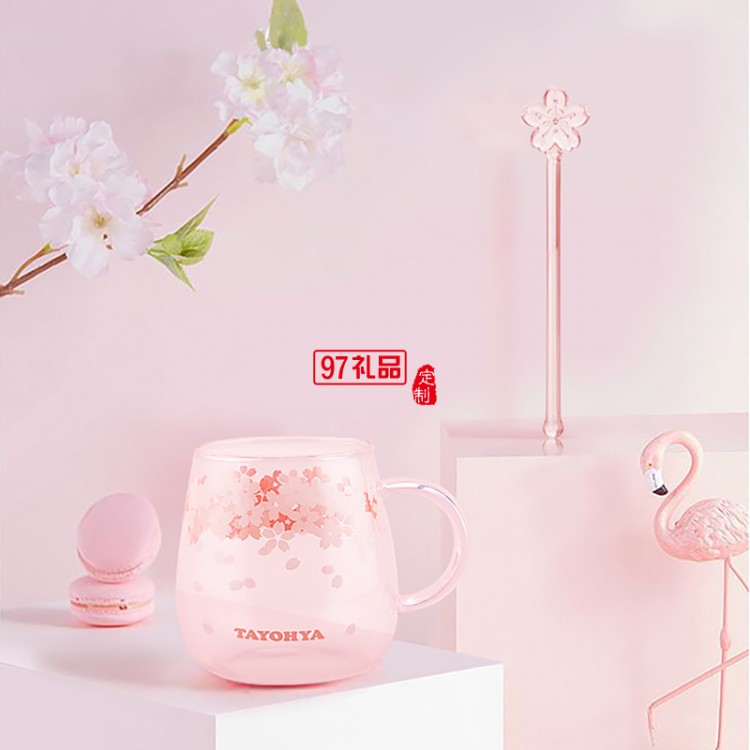 櫻花 粉彩玻璃杯高硼硅耐熱玻璃杯水杯