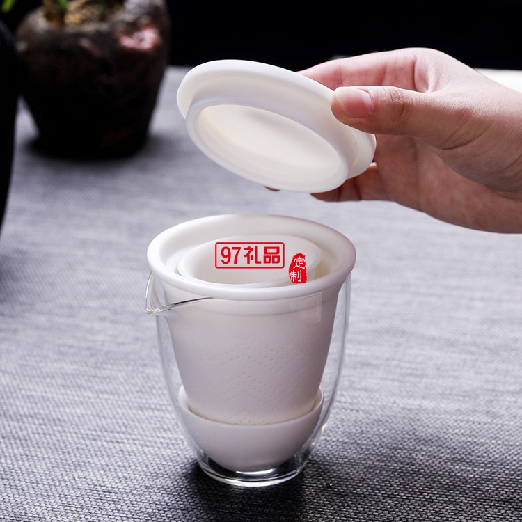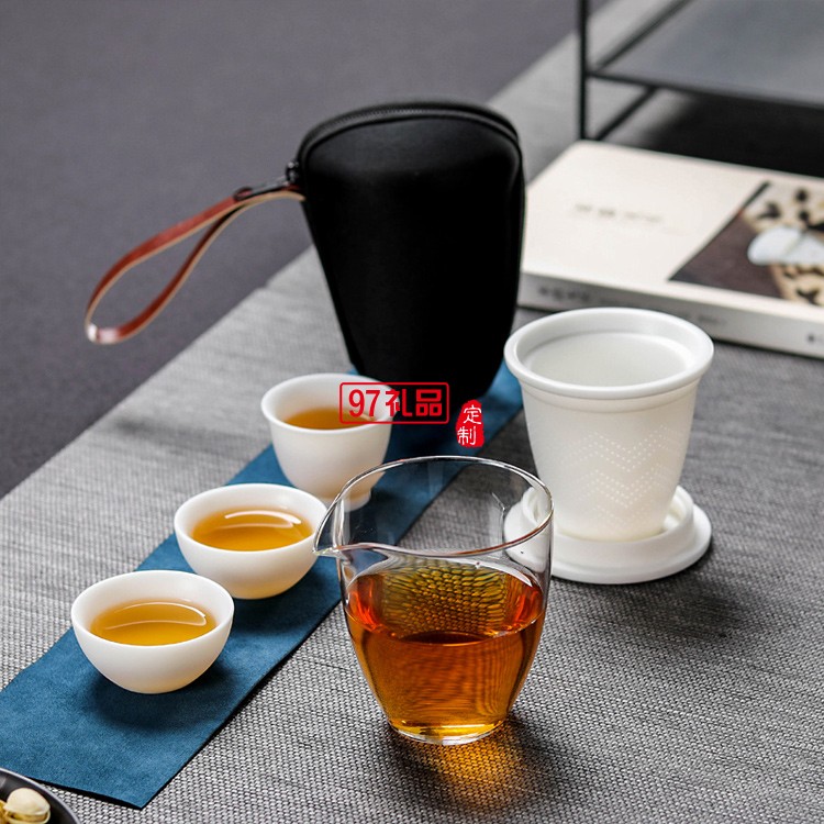 白瓷旅行茶具泡茶杯套裝便攜收納家用戶外小套快客杯一壺三杯