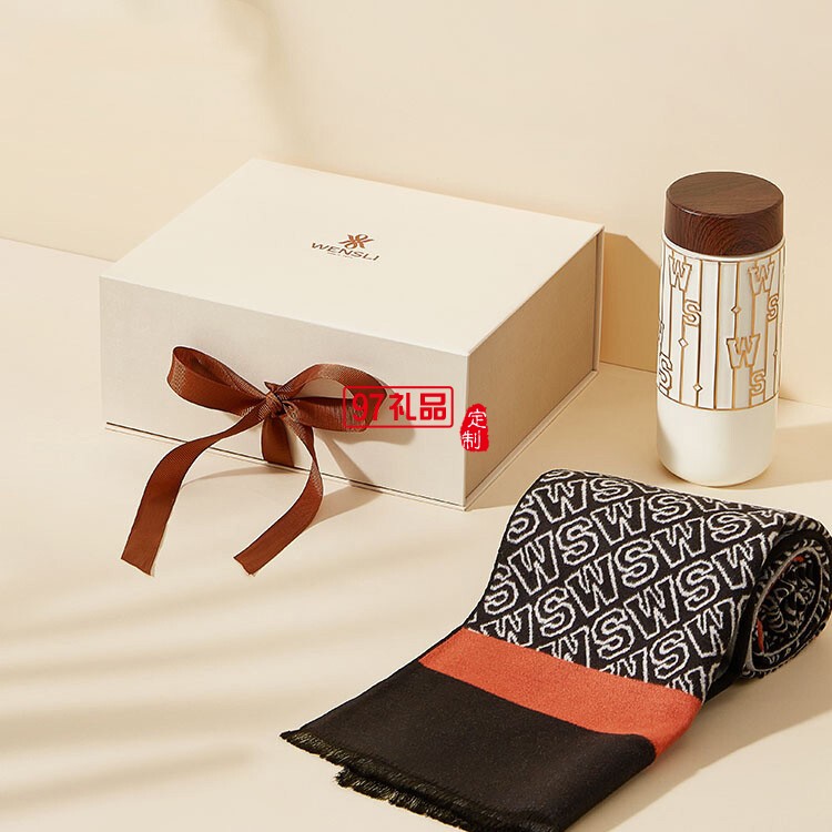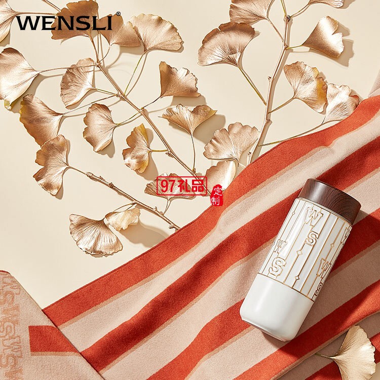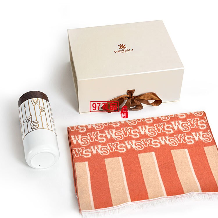 萬事利冬季2022年送禮新款真絲絨圍巾陶瓷隨行杯禮盒