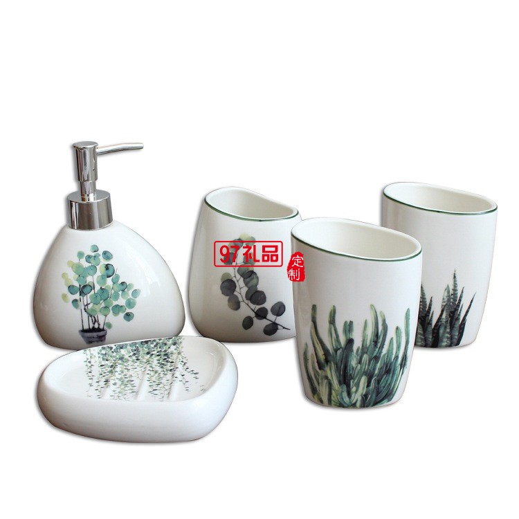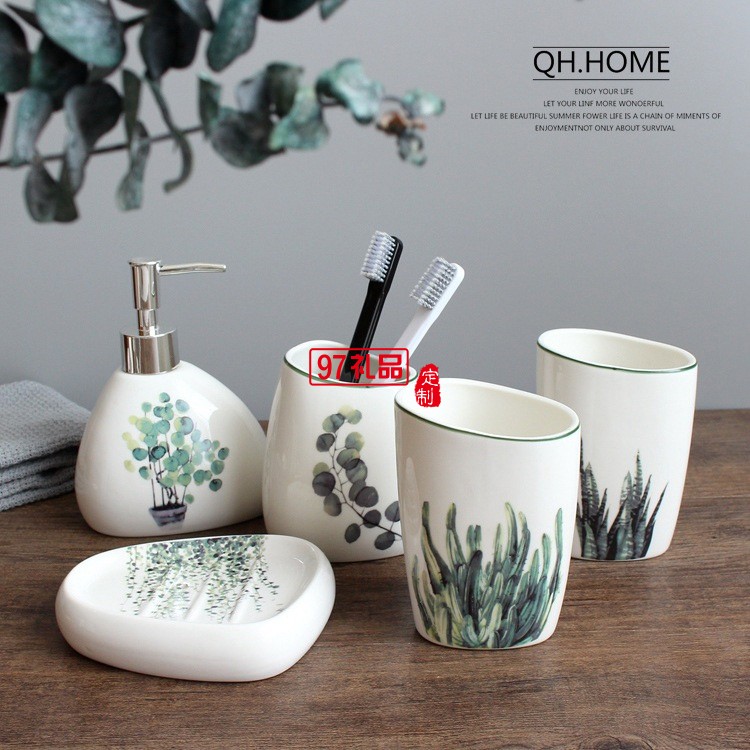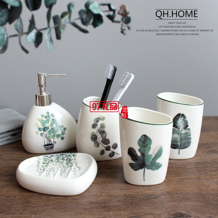 衛(wèi)浴五件套北歐陶瓷洗漱六件套浴室用品套裝結(jié)婚洗漱套裝配托盤
