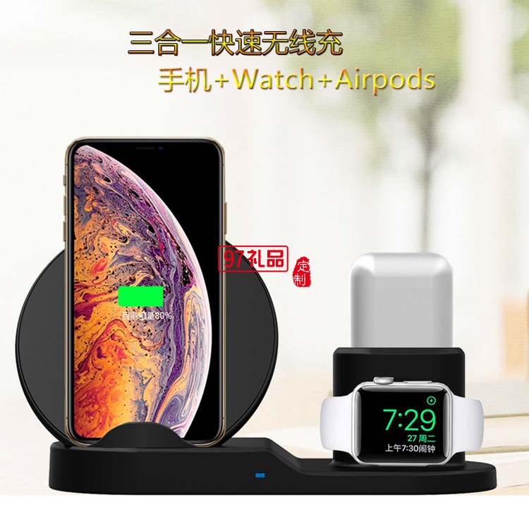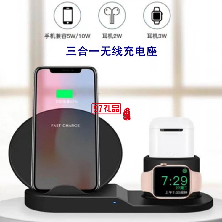 三合一立式手機(jī)支架無線充電器定制公司廣告禮品