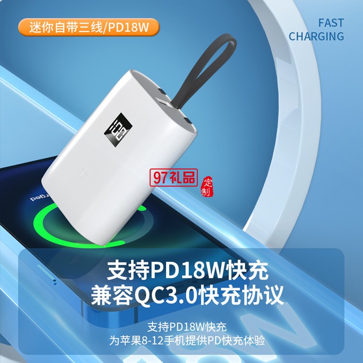 新款自帶線迷你移動(dòng)電源小巧超10000mHA大容量