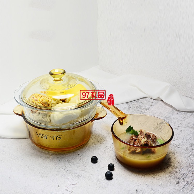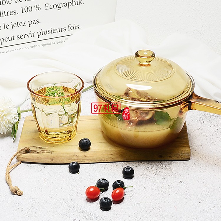 晶彩透明鍋1.5L單柄琥珀鍋玻璃鍋粥鍋奶鍋定制公司廣告禮品