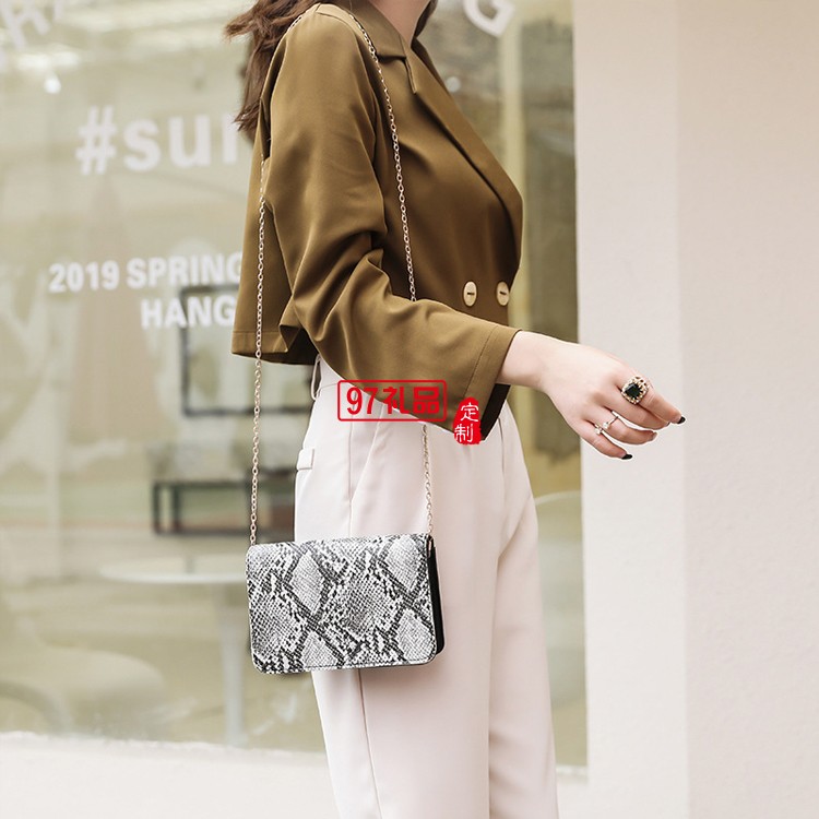 新款蛇紋小方包悠閑百搭單肩斜跨手機(jī)包禮品包
