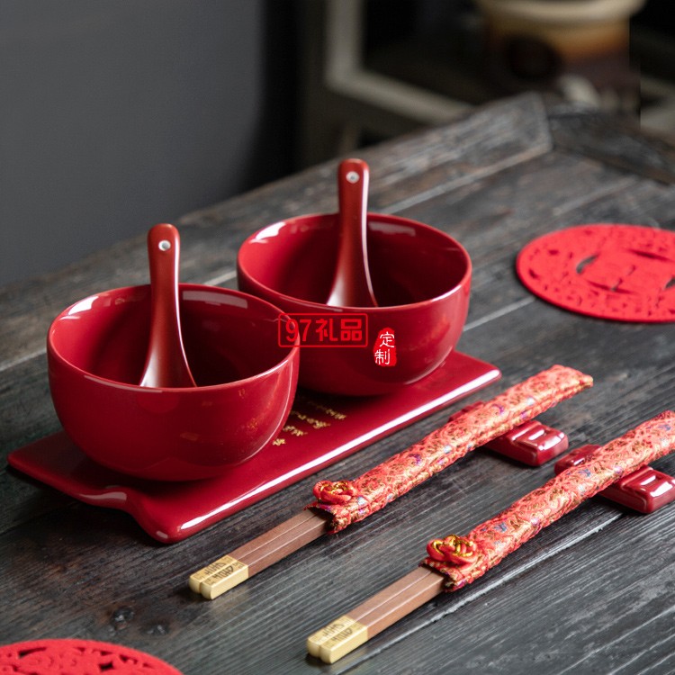 新年喜慶碗筷碗套裝禮品可定制
