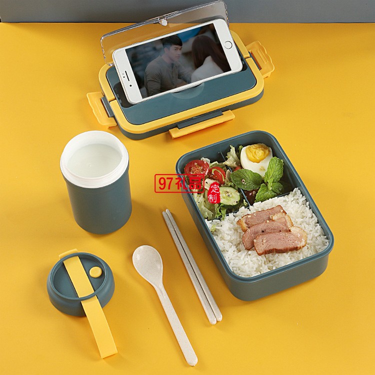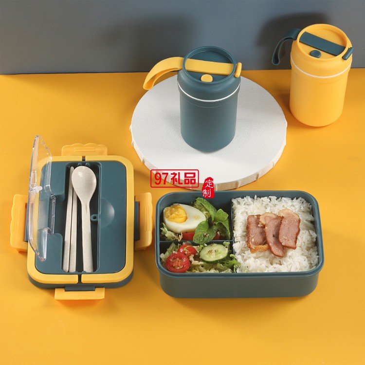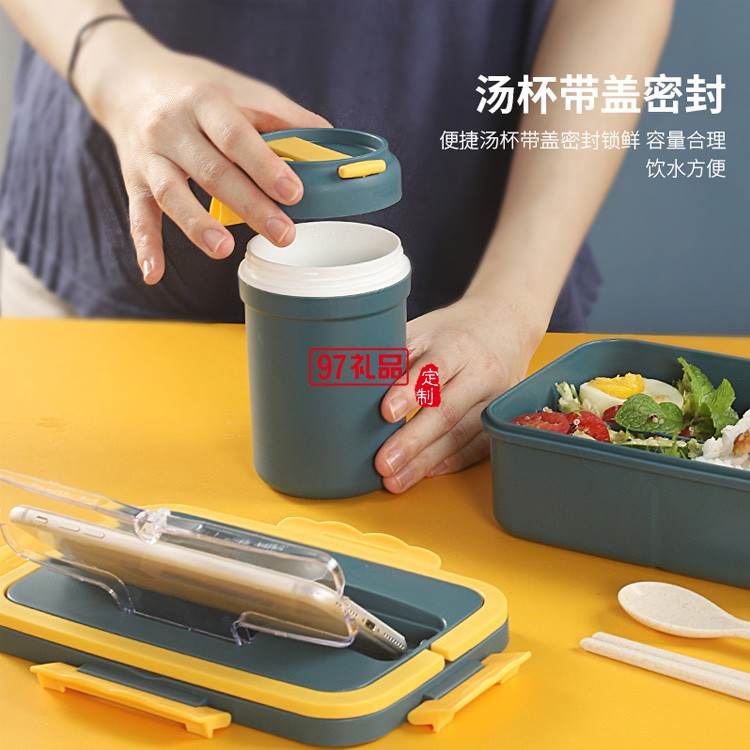 學(xué)生飯盒午餐盒小麥秸稈便當(dāng)盒早餐杯套裝禮品可微波爐塑料保鮮盒