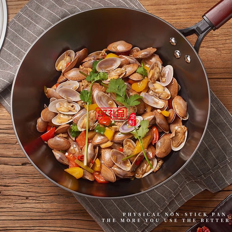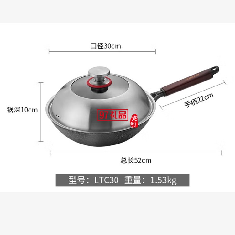 歐美達(dá)無涂層鐵鍋不粘炒鍋炒菜鍋 LTC30 30cm定制公司廣告禮品