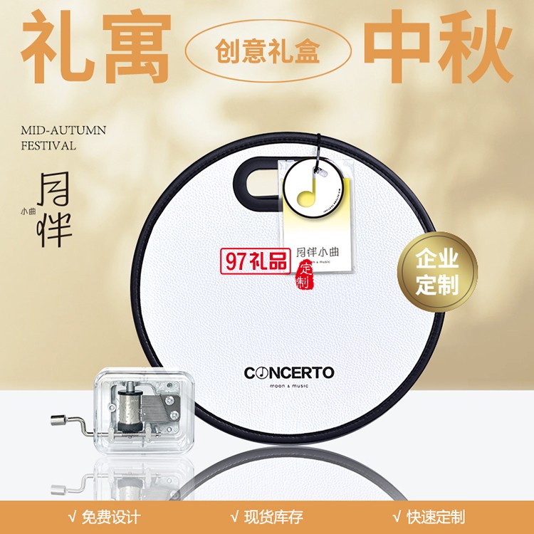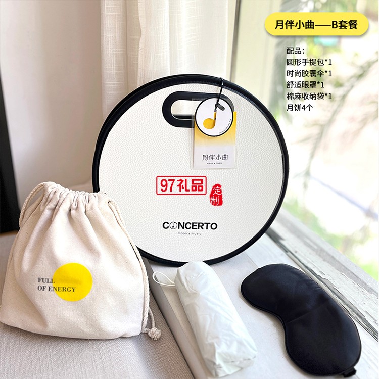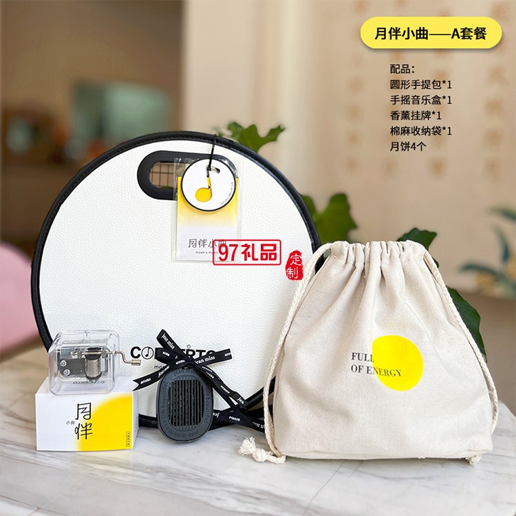 配品:圓形手提包、手搖音樂盒、香薰掛牌、月餅4個(gè)