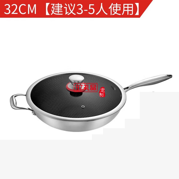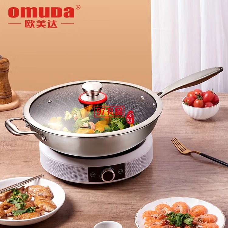 歐美達(dá)316不銹鋼物理不粘炒鍋多功能鍋 JZC32-A定制公司廣告禮品