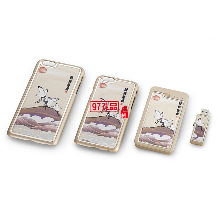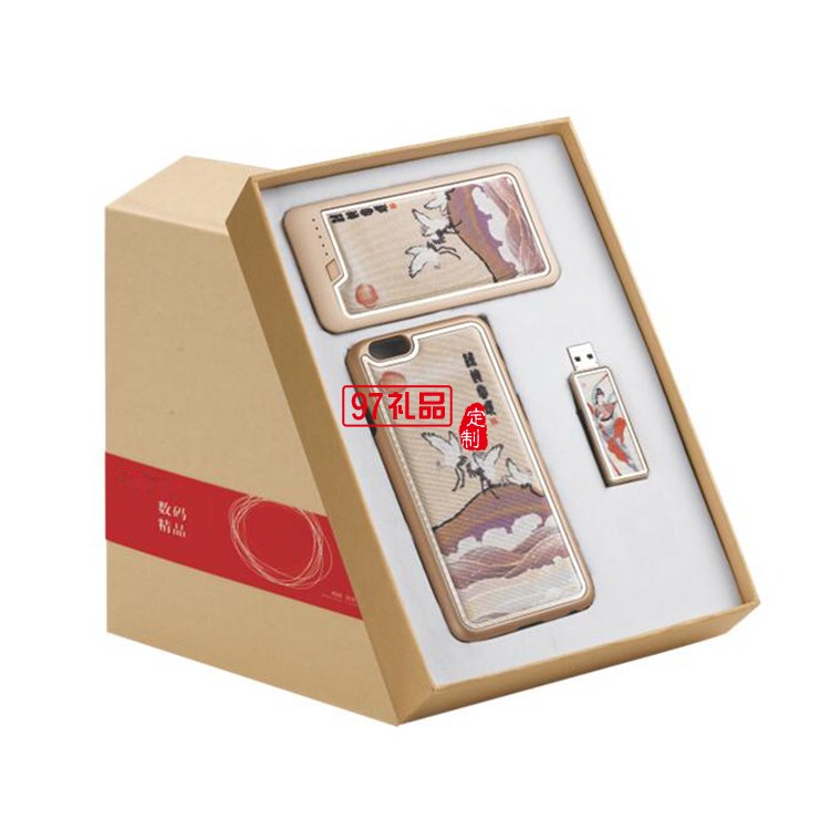 絲綢手機(jī)殼+8GU盤+5000mah移動(dòng)電源