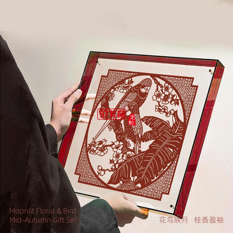 花鳥映月細(xì)紋刻紙中秋新款月餅禮盒裝企業(yè)團(tuán)購定制logo商務(wù)伴手禮