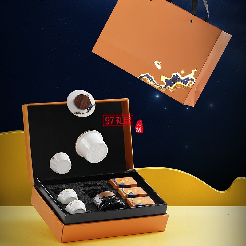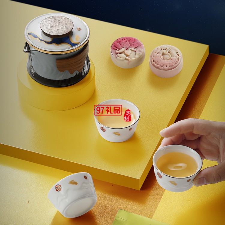 中秋禮品 玉兔奔月手抓茶壺老白茶禮盒羊脂玉茶具套裝