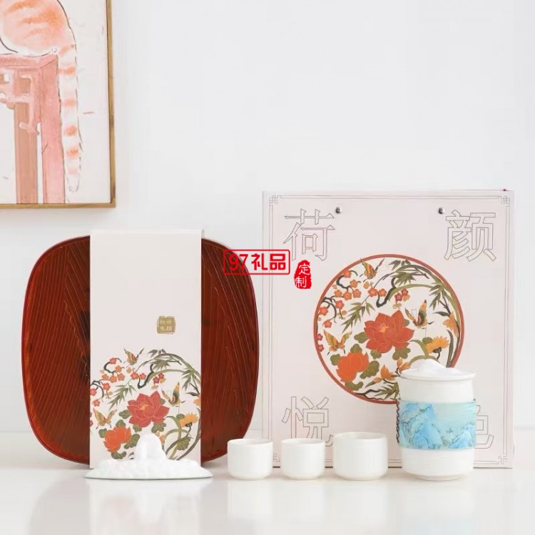 國(guó)風(fēng)陶瓷茶具套裝 手繪玉兔品茗杯壺 家用送禮中秋禮盒裝