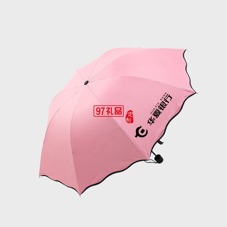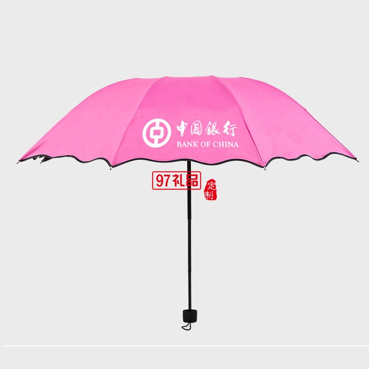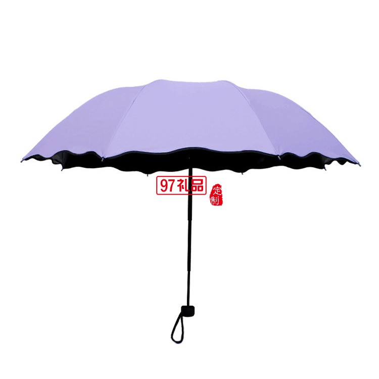 小黑傘 黑膠遇水開花晴雨傘 折疊雨傘戶外三折廣告?zhèn)?可定制logo