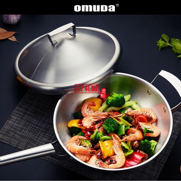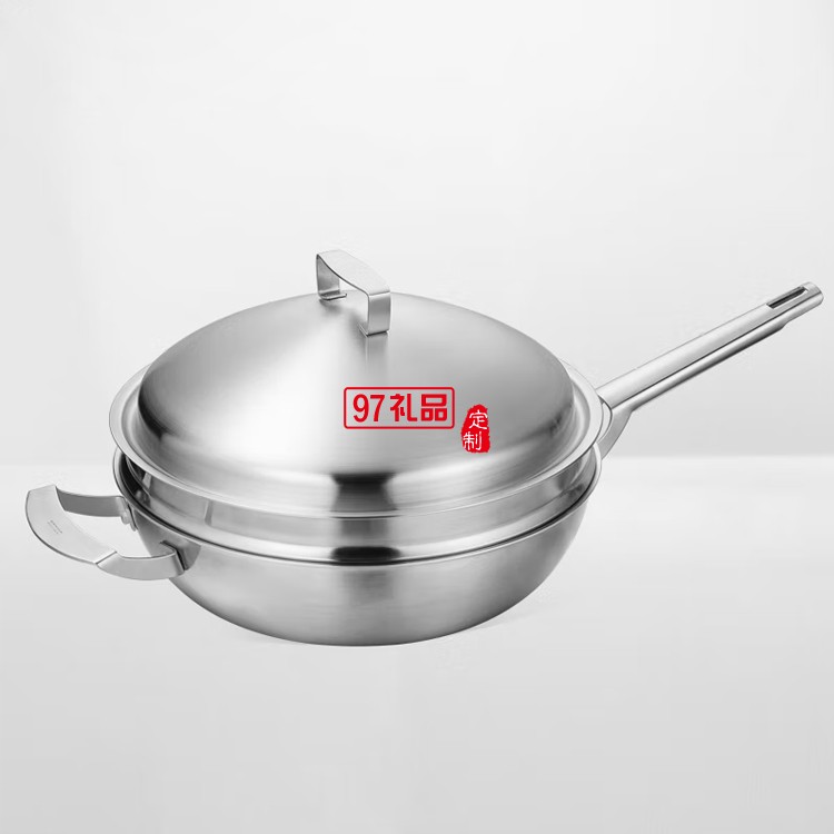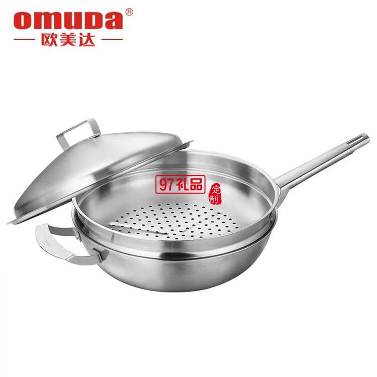 歐美達廚具304不銹鋼炒鍋不粘鍋帶蒸屜LKC30定制公司廣告禮品