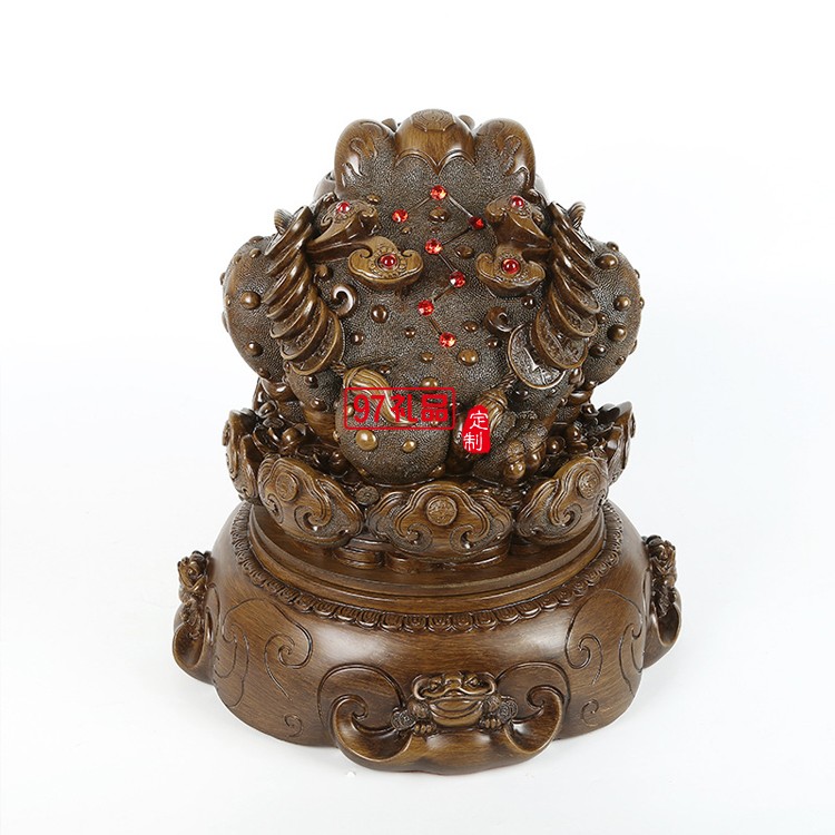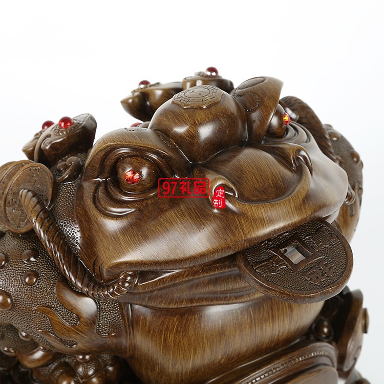 招財(cái)金蟾擺件仿木八方來財(cái)樹脂工藝品