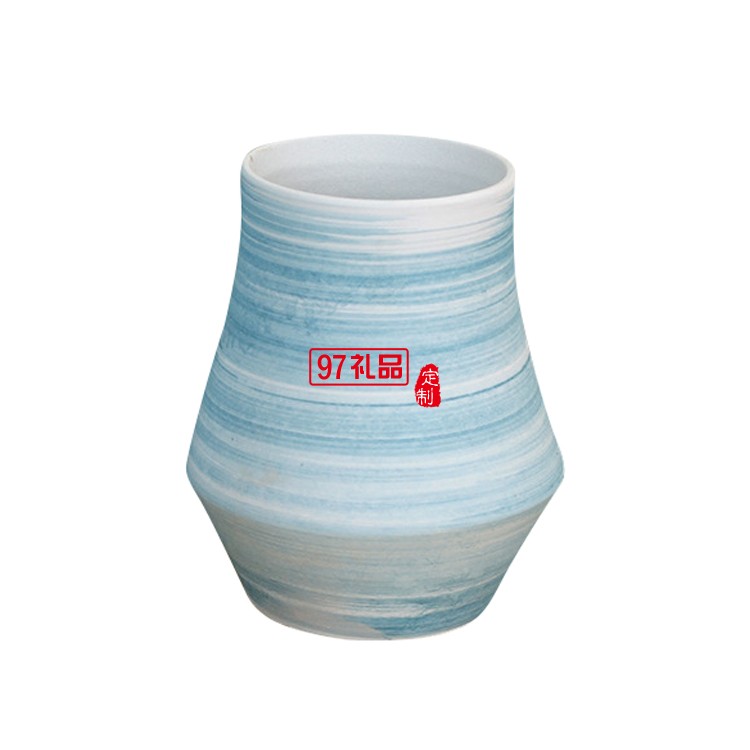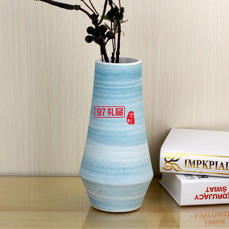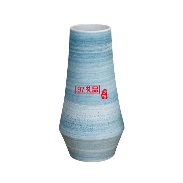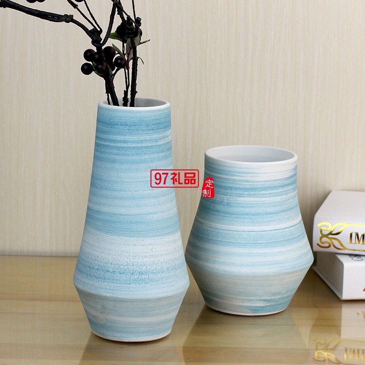 景德鎮(zhèn)陶瓷花瓶套裝 客廳擺件工藝品 藍(lán)色螺紋陶瓷兩件套花瓶擺件