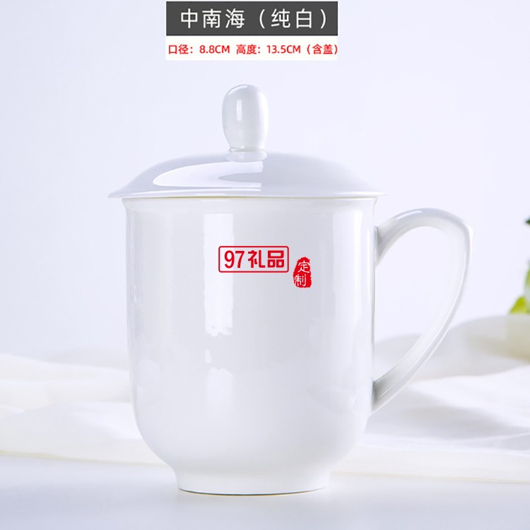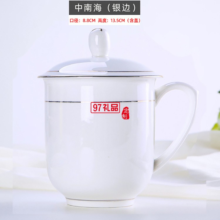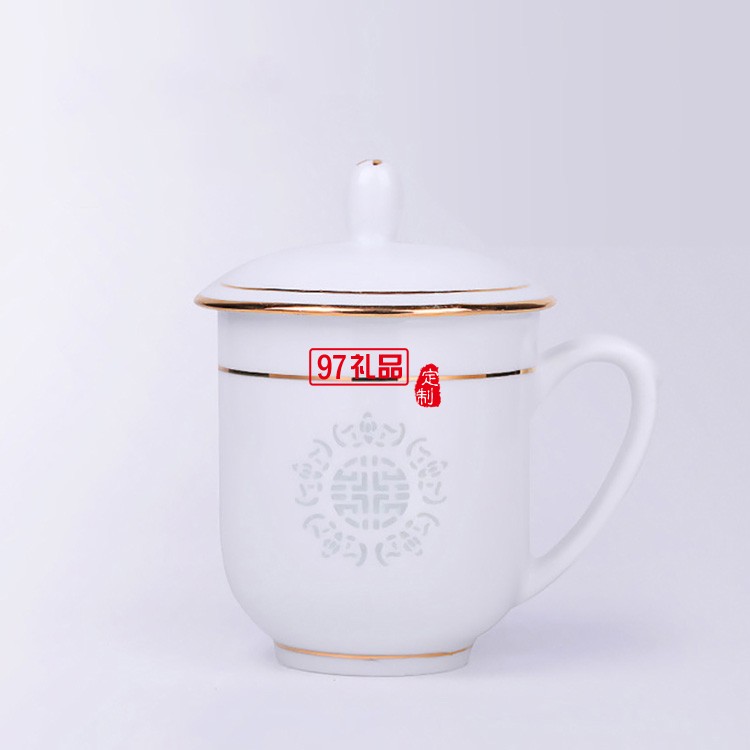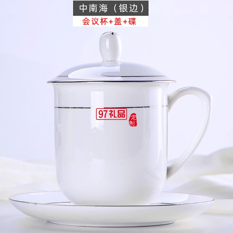 辦公杯批發(fā)景德鎮(zhèn)陶瓷杯帶蓋手工描金水杯會議杯碟骨瓷茶杯可定制