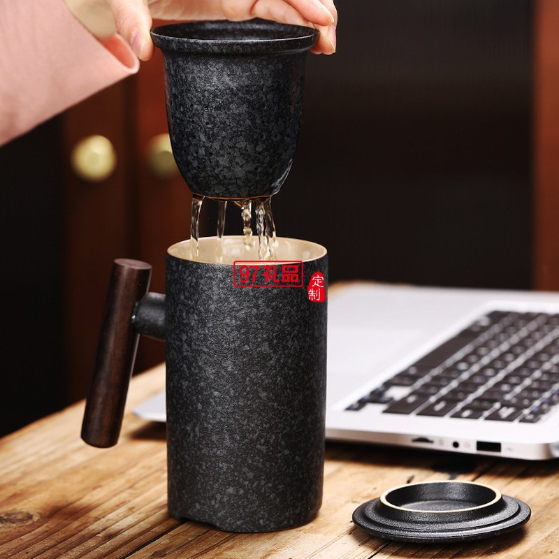 中秋節(jié)禮品實(shí)用送父親 陶瓷馬克杯茶水分離杯泡茶水杯 刻字定制
