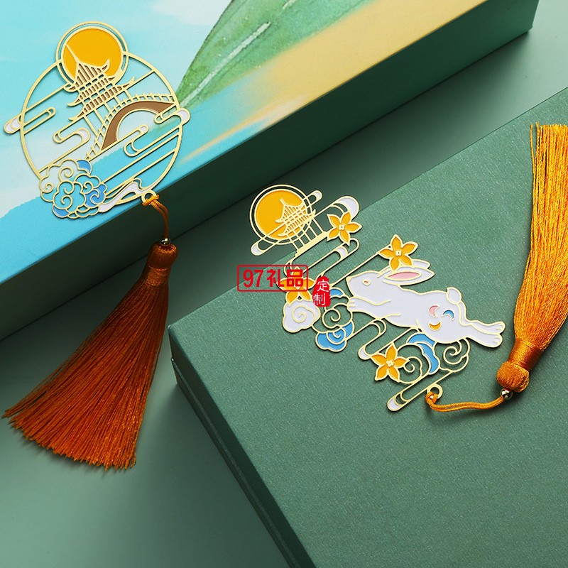 金屬書簽 中秋書簽創(chuàng)意設(shè)計(jì)兔子款廣寒宮款書簽送人小禮品定制