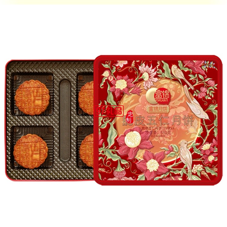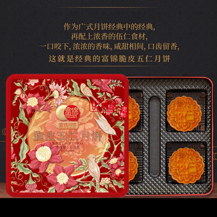 脆皮伍仁廣東富錦老廣式月餅團購福利送禮高端鐵盒