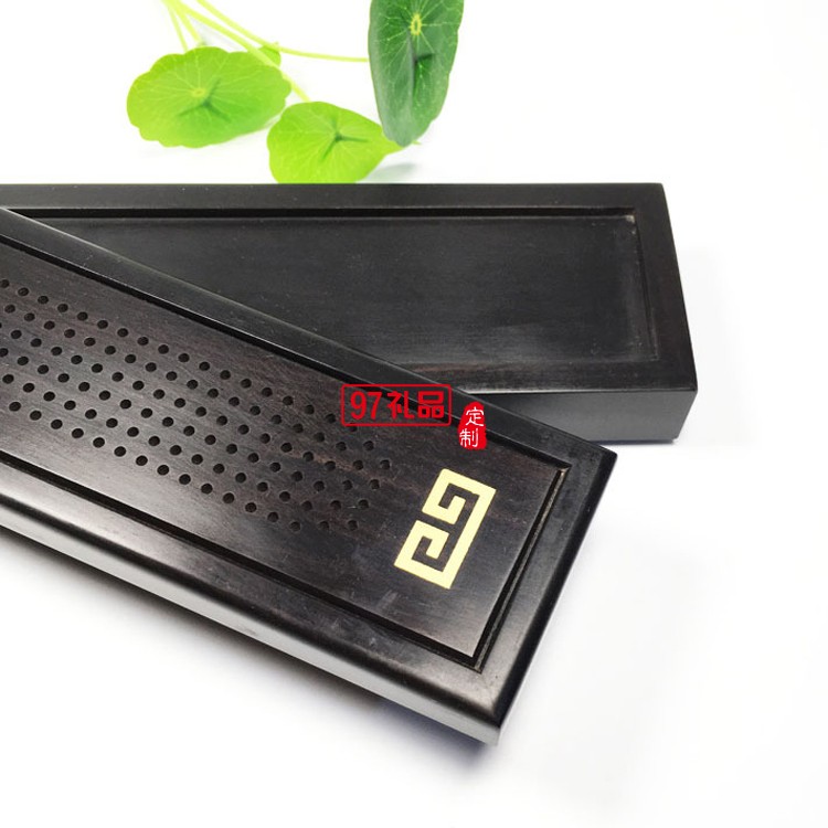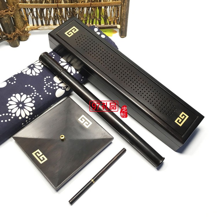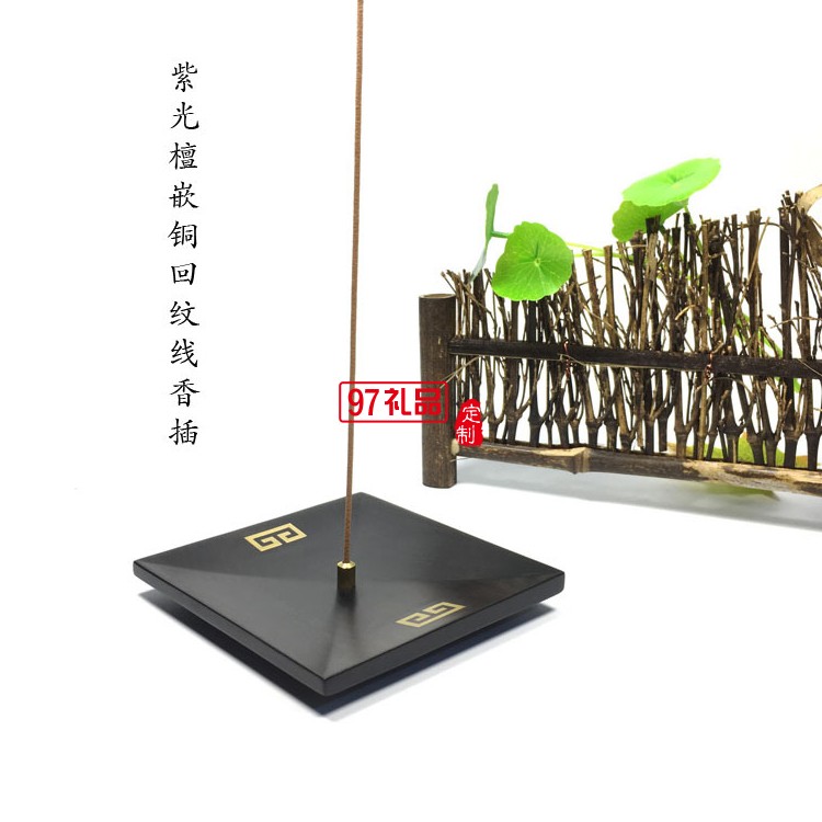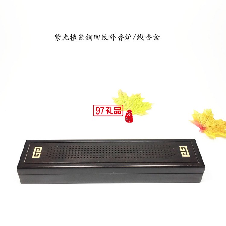【品名】:紫光檀木質(zhì)嵌銅回紋線香臥香具香爐香盒香插四件禮盒套裝