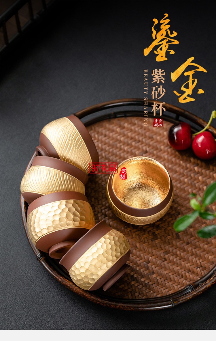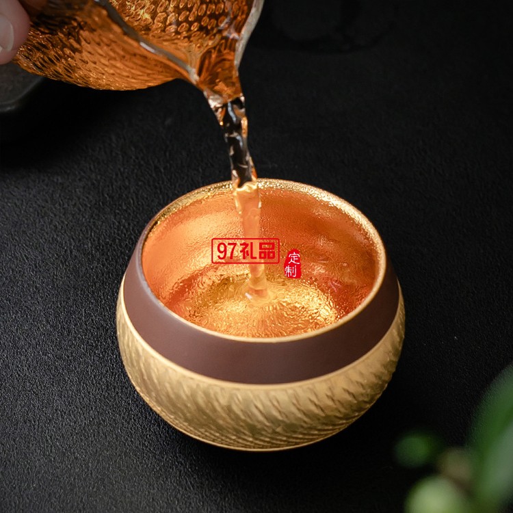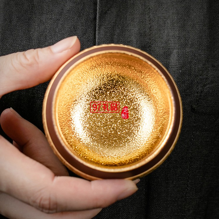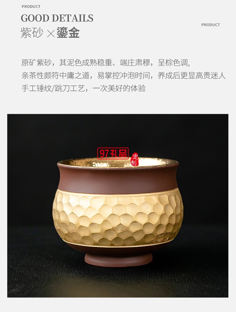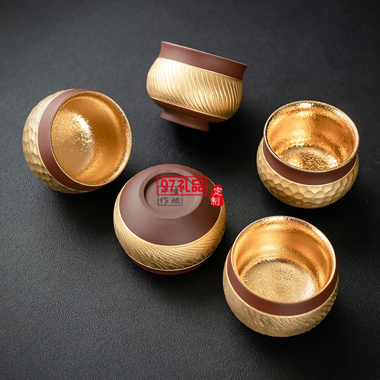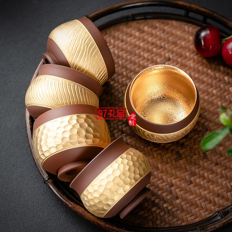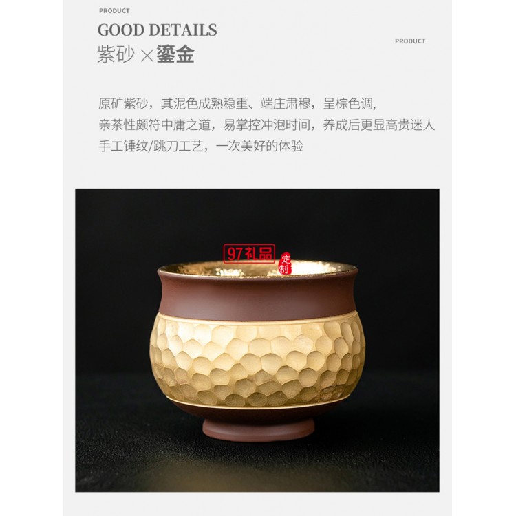 紫砂喝茶杯鎏24K金專用主人杯品茗杯功夫茶單杯茶碗高檔商務(wù)禮品定制