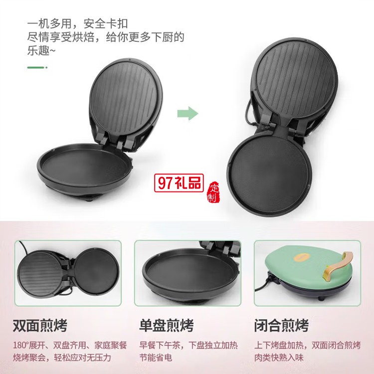 小型翡麗時尚電餅鐺雙面加熱多功能不粘薄餅機K39定制公司廣告禮品