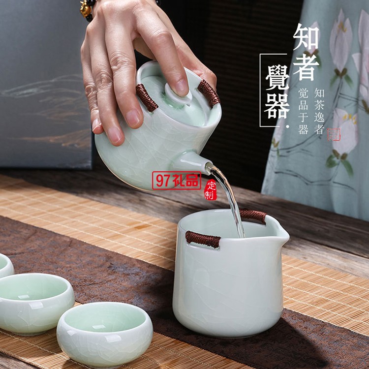 便攜哥窯茶具套裝 居家送禮泡茶八件套 金絲鐵線防燙手可定制LOGO